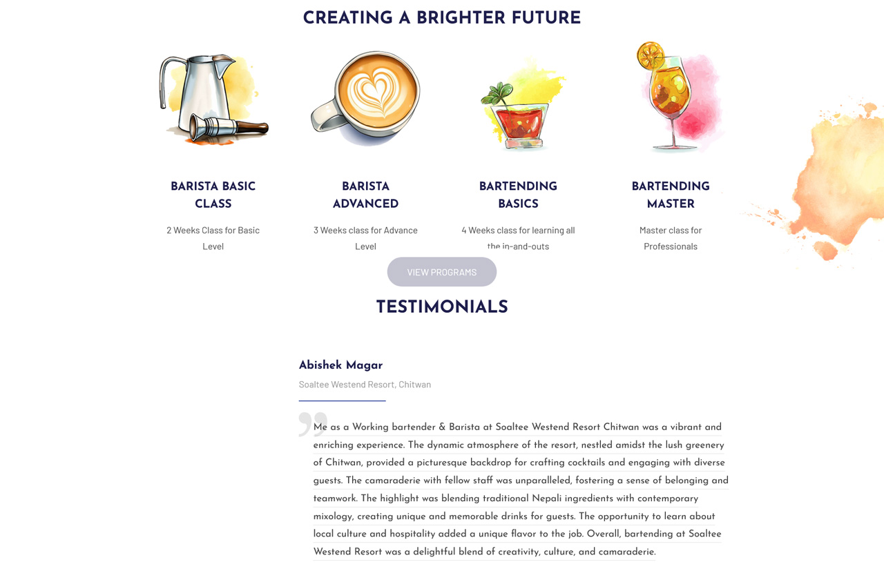 Website Design and Development of a Barista Training Company in Narayangarh
